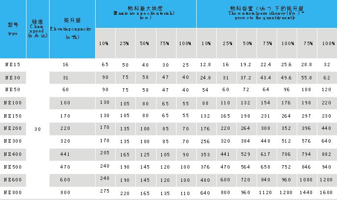 NE系列板鏈?zhǔn)教嵘龣C(jī)共有11種型號(hào):NE15、NE30、NE50、NE100、NE150、NE200、NE300、NE400、NE500、NE600、NE800。